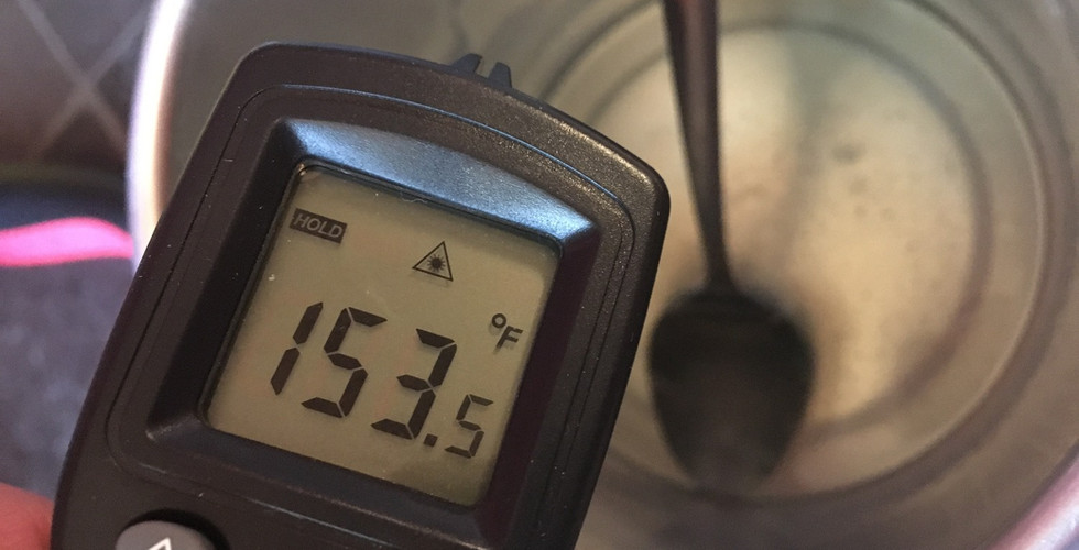 2. Retirer du bain marie et prendre la température avant d'ajouter la fragrance. Selon des différentes fragrances et huiles essentielles utilisées, les indications concernant les points de fusion (flashpoint) peuvent varier. Consultez notre article sur les points de fusion pour une liste comprenant une large variété d'huiles et huiles essentielles.Â